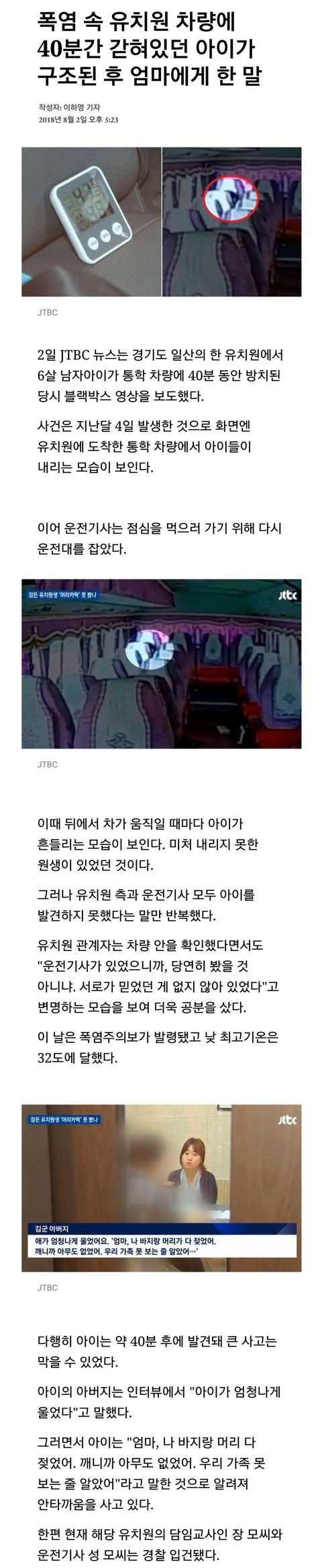 폭염 속 갇혀있던 아이가 엄마에게 한 말