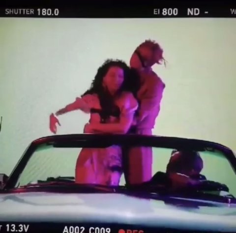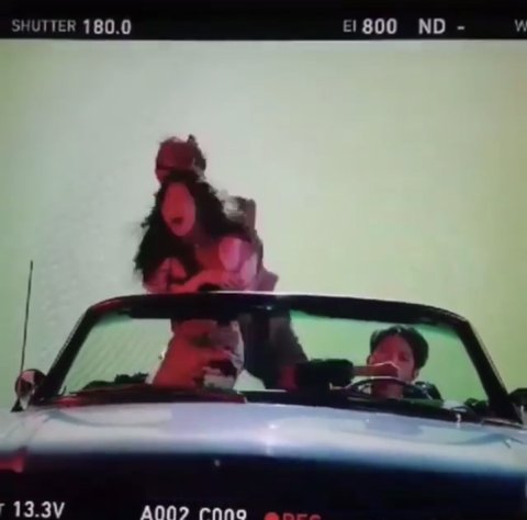 차에서 흐느적흐느적 하며 눈을 천으로 가리고 찍고있음