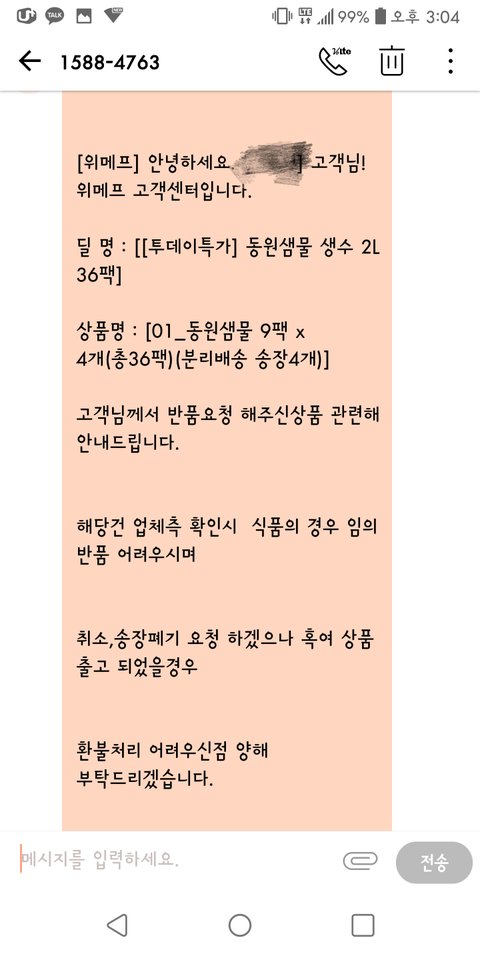 식품이라 임의 반품이 어렵다는 문자가왔으며 이건으로 화가나서 연락했더니