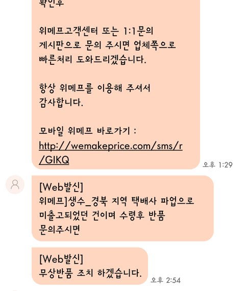 하지만 물이 배송되지 않아서 다시 연락하였고, 최대한 빨리 배송한다는 말만 돌아왔으며 물건은 오지 않았습니다.