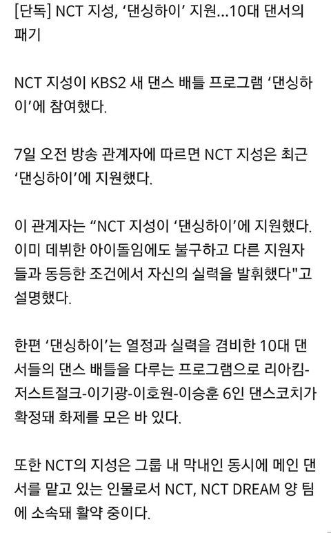 지성이 '댄싱하이' 출연 피셜 땅땅