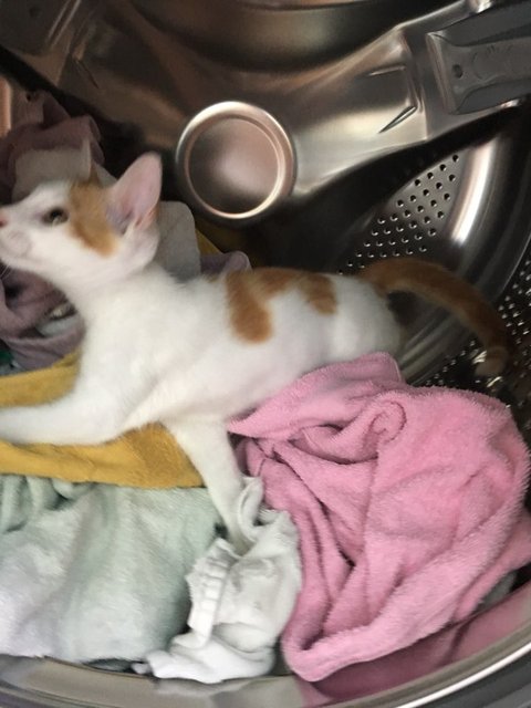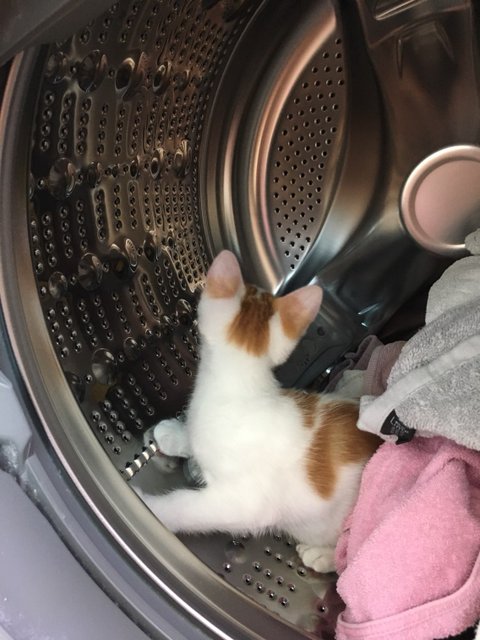 두 번 째는 세탁기 놀인데 냥이 찾다가 한참 안 보이면 여기 가서 놀고 있어요. 세탁기 구조가 밖에서 힘으로 닫지 않는 한 문이 닫힐 염려는 없지만 거실에 에어컨 틀어 놔서 시원한데 왜 굳이 세탁기 안에서 노는지 모르겠어요.