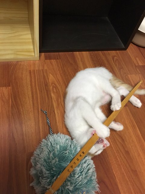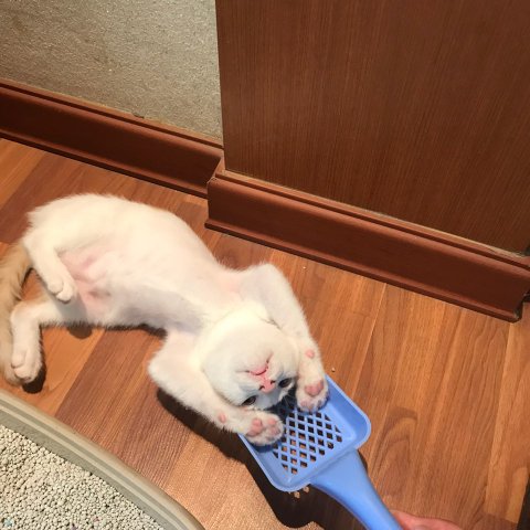 이 놀이를 참 좋아하는 냥이. 자기 똥 치워 주고 소중하고 고마운 삽이라는 건 알겠는데 위에서 덤블링 하고 깨물고 난리가 나요. 저 입으로 뽀뽀 해준다고 생각하니 으~ 안 해야지 했다가 하고 나서 깨달을 때가 많아요.