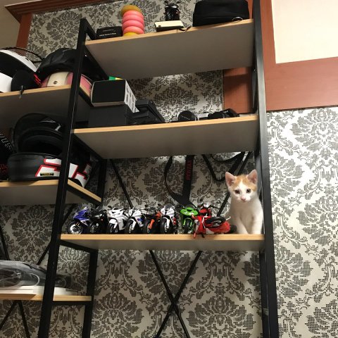 이건 캣타워를 안 사줘서 그런가 선반위에 물건을 손으로 쳐서 하나씩 떨어뜨려요.
