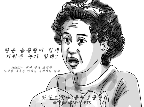 -벅스아이디기부 : https://twitter.com/TEAMARMYforBTS/status/1019547357224919041-음원총공비기부 : https://twitter.com/TEAMARMYforBTS/status/1018877964702765057-앨범기부공구 : https://twitter.com/TEAMARMYforBTS/status/1019929912205926400
