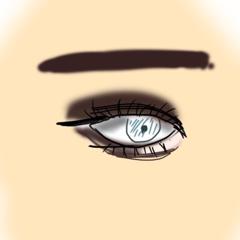 그레이 렌즈+졸래 긴 눈썹+발색 진한 섀도우+덕칠한 쌍액+끝을 알 수 없는 아이라인+이유를 알 수 없는 언더라인, 앞트임라인+송충이 애굣살, 마스카라...