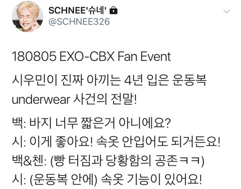 https://twitter.com/99_forest/status/1026013827094081537△팬미팅에서 시우민 반바지 소개영상 바로가기 클릭(편집영상)