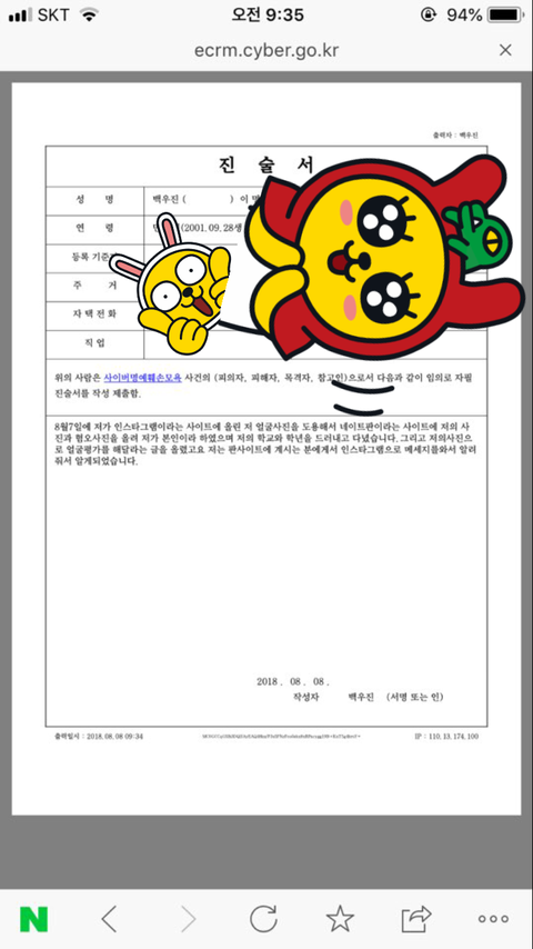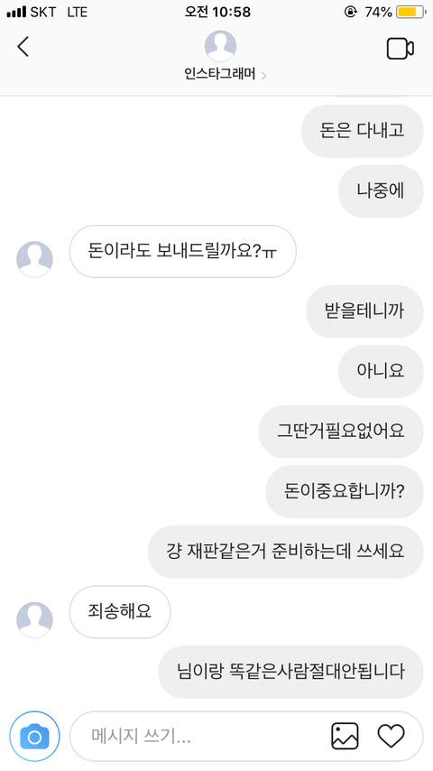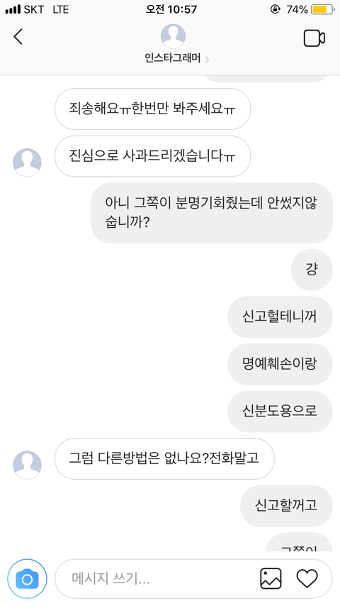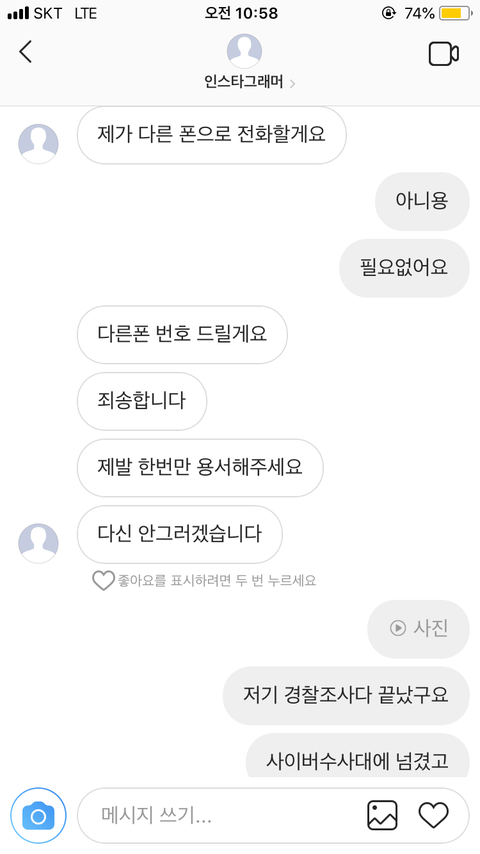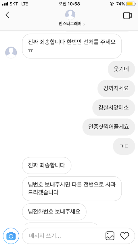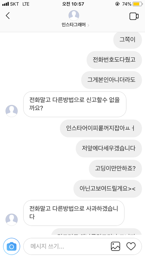 어제 똥,오줌사진과 저의 사진을 도용한 사람 경찰청에 와서 신고 했고 그사람이 저한테 사과한다면 전화번호 까지 다줘서 쉽게 잡을수 있을것 같습니다 다음주 중으로 저가사는 지역에 소환할거고요 인스타 탈퇴하셨던데 그냥 이판글로 보세요 저사진도용해서 이상한짓한고 끝까지 사과안받고 법적대응하겠습니다.장난 같죠?이미 접수 다했어요^^