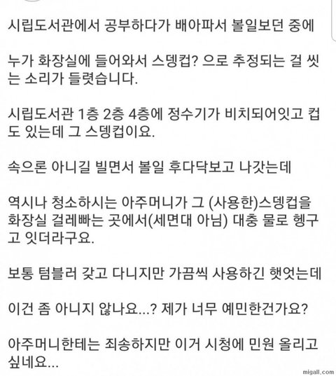 73회 화장실에서 물컵 씻는 청소 아줌마