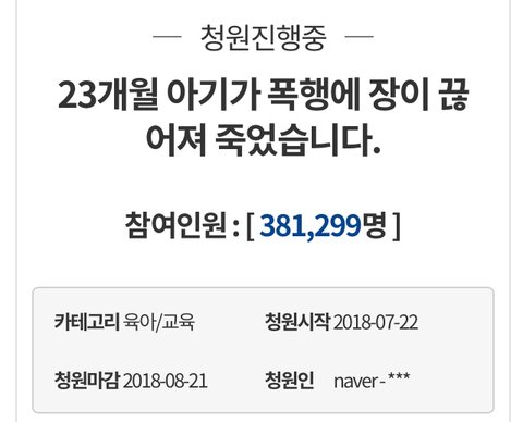 아래 링크 들어가셔서 청원 동의 부탁드립니다