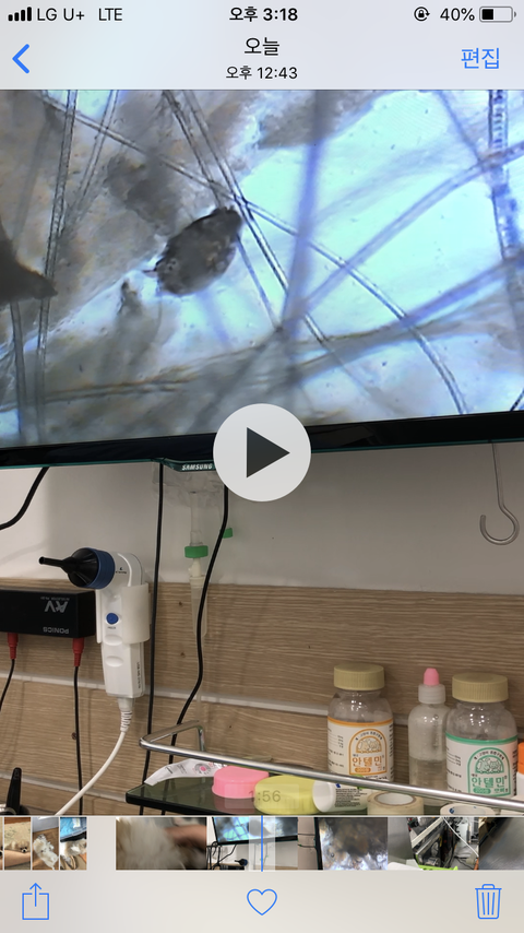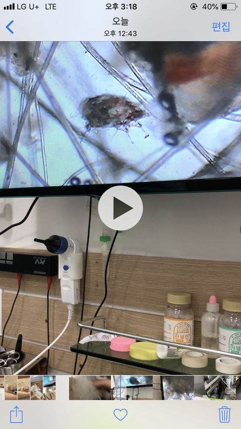저희집에 온지는 2주가 되었고 온 날부터 애가 몸을 긁었고,처음 다닌 병원에 물어봤을땐 그냥 강아지들은 자주 긁는다 하였고,그렇게 알고 있었는데 요근래 너무 심하게 긁길래 피딱지까지 생겨 오늘 평소 다니던 병원 말고 기계가 있는 같은동네 다른 병원에 갔습니다.