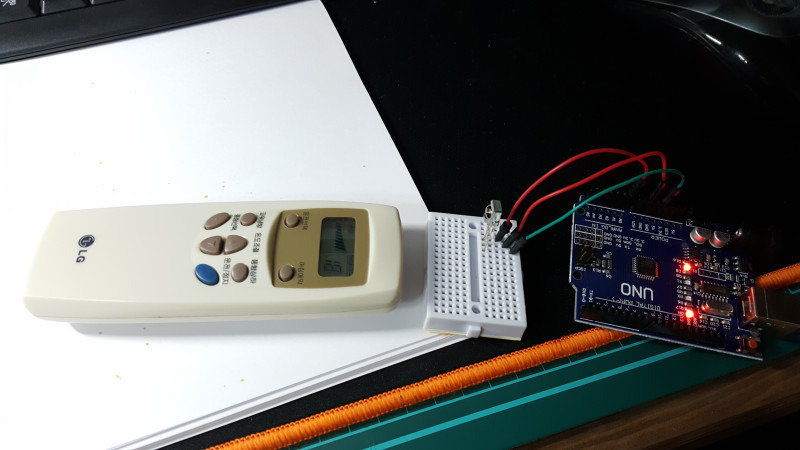 IR LED가 없어서 집에 있는 리모컨 앞부분 떼서 쓸려고 했는데