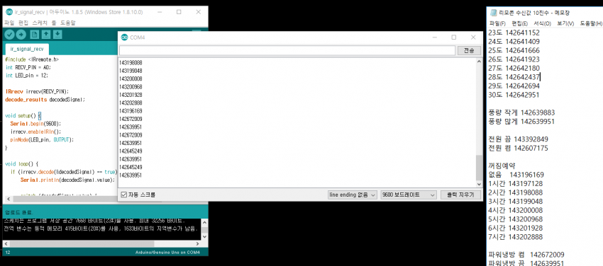 아까 리모컨 수신 받은 값 이용해서 코딩함