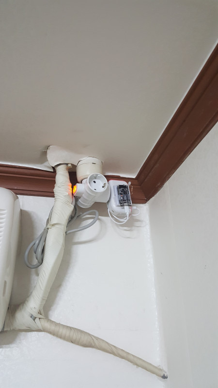 그래서 에어컨 수신부까지 LED를 연장해서 테이프로 고정하기로 했음