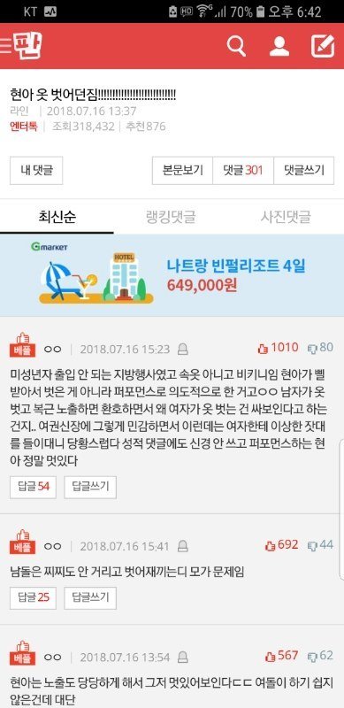 톡선 현아글 베댓 성희롱 개더러워; 진짜