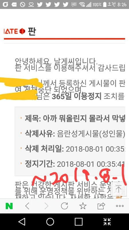 혹시 8월1일 ㅇㅉ파뤼한거 기억나냐 벽반 초반에? 그중한련인데 365일 정지당했음 ..^^ 기껏해야 10일정도일줄알았는데 365일...