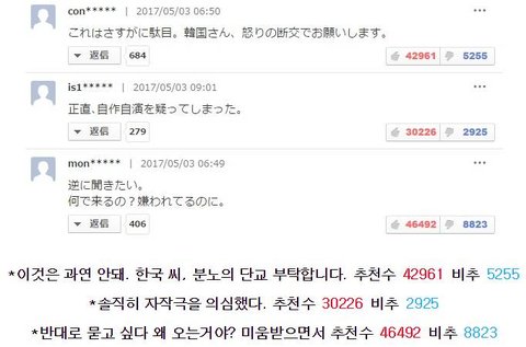 그리고 이런 각종 혐한테러가 일본 포털뉴스에 기사화 되면 달리는 댓글들