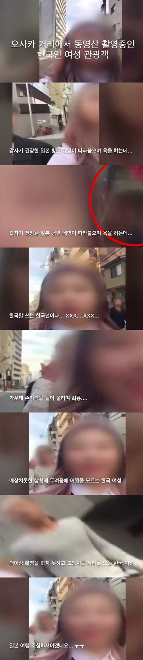 위상황 젊은 일본남자들이 한국인 여성 2명에게 욕설을 하는 장면