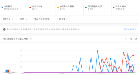 빅뱅 거짓말=FT아일랜드 사랑앓이>빅뱅 마지막인사>FT아일랜드 천둥=슈퍼주니어 돈돈