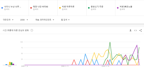 빅뱅 하루하루>동방신기 주문 미로틱>빅뱅 붉은노을>샤이니 누난너무예뻐>태양 나만 바라봐