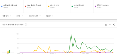 샤이니 루시퍼 > 비스트 쇼크 > 2PM I'll be back > 2AM 죽어도 못보내=씨엔블루 외톨이야