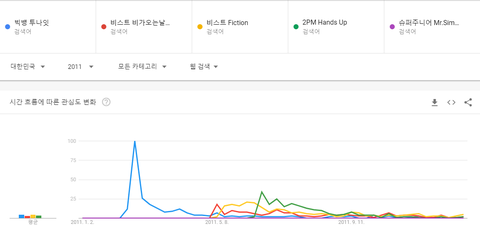 빅뱅 투나잇>비스트 픽션>비스트 비가오는날엔>2PM 핸즈업>슈퍼주니어 미스터심플