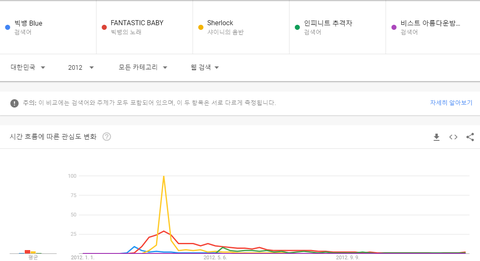 빅뱅 판타스틱 베이비>샤이니 셜록> 빅뱅 블루> 인피니트 추격자 > 비스트 아름다운 밤이야