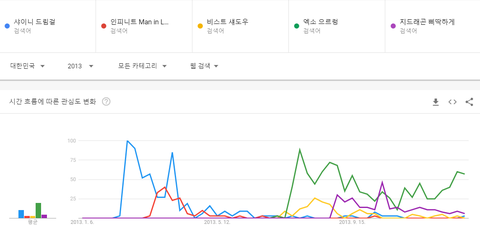 엑소 으르렁>샤이니 드림걸>지드래곤 삐딱하게>인피니트 남자가 사랑할때>비스트 섀도우