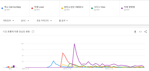 빅뱅 뱅뱅뱅>빅뱅 루저>샤이니 뷰>엑소 콜미베이비>방탄소년단 아이니드유