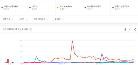 나야나>방탄소년단 봄날>방탄소년단 DNA>엑소 코코밥=워너원 에네제틱