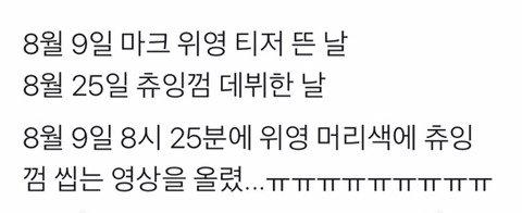 근데 십대의 마지막 드림에 남을 것인가를 결정해야 하는 위영 투블럭 흑발마크가 시간을 역재생으로 되돌려서 다시 껌을 씹는다 = 시간을 되돌려서 드림에 머물기로 결정함