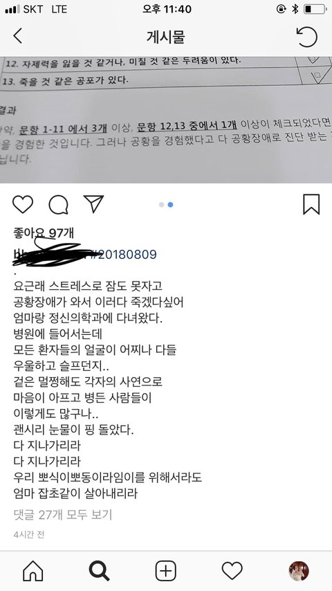 공황장애가 있으셔서 (인스타에 올리셨었죠) 치유의 시간이 필요하신건 알겠습니다.