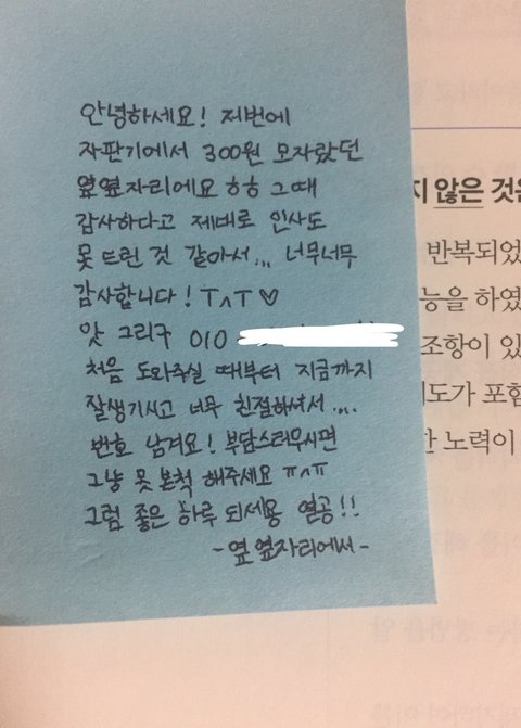 4회 옆옆자리 남자분 쪽지 후기야.....ㅎㅎ