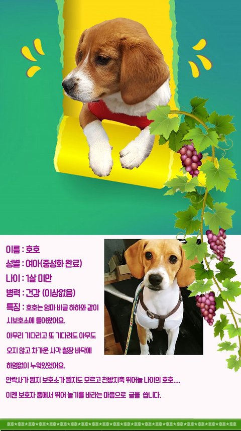 안녕하세요 오늘의 입양아이는 호호 입니다..