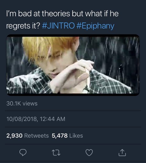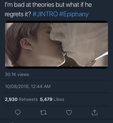 피땀때 석진이가 악마한테 키스를 하잖아. 그걸 후회하는거 아니냐는 외랑둥의 궁예가 있길래 그럴듯해서 가져왔어!!