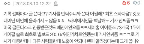 엔터 도배하는거 원래 자제하는게 맞는데 기사 안써준다 어쩐다 뇌피셜 아무쓸데도 없고 그냥 피해의식쩔어 보임....그리고 뭔 기사안써줘서 엔터에 쓴다 어쩔래 이럼?진짜 제발 좀 쪽팔리는글 자제해...