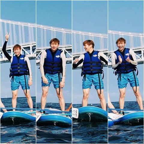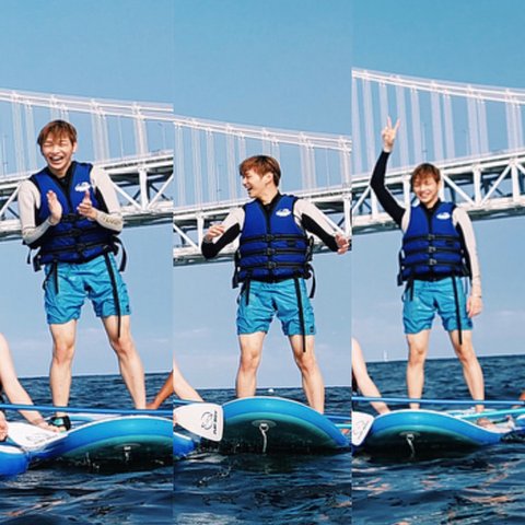 일주년 지나고 1박2일 휴가 동안 우진이랑 부산 광안리에서 패들보드 (서핑 보드같은거) 타고왔다고 패들보드 계정에 목격담이 올라 왔어