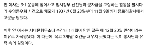 임신한 채 고문 견뎠는데 독립유공자 탈락하셨대;;