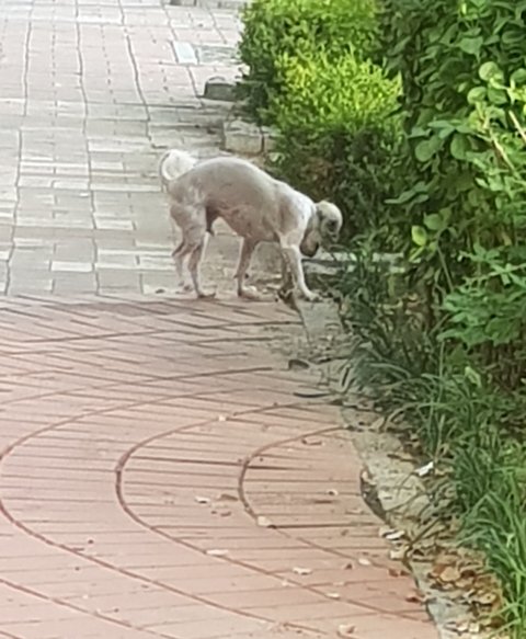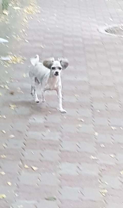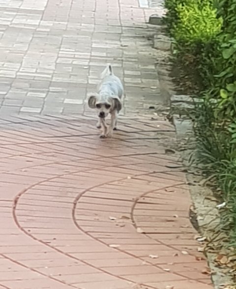 몸은 흰색바탕에 얼룩이 조금 있었고, 귀빼고 털이 짧은게 미용한지 얼마 안돼보였어요. 관찰해본 바로는 중성화되어있는 수컷인것같고, 5키로정도 돼보였습니다.