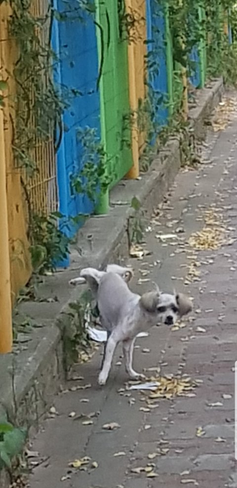 처음에는 목줄없이 강아지 산책시키는 분이 있나싶어서 강아지를 쫓아가봤는데 혼자 돌아다니는것 같더라구요.