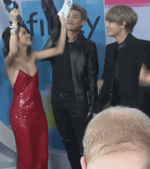 잘보면 뷔가 왼손 번쩍! 들면서 왼손으로 브이를 했는데 여자분이 먼저 안기셔 그다음에 뷔 오른손(매너손)이 올라오는걸 볼수있다ㅎㅎ