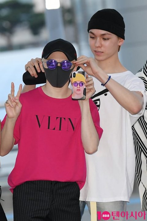당당하게 본인 폰케를 들고있는 우지에게 선글라스도 직접 씌워주는 버논