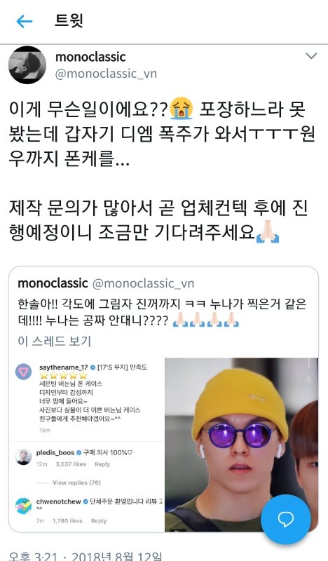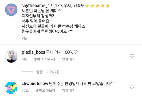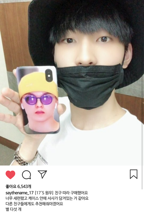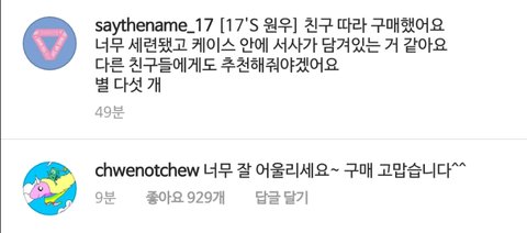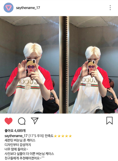 곧 세븐틴 인스타그램에 올라 온 만족스러운 고객 우지의 후기