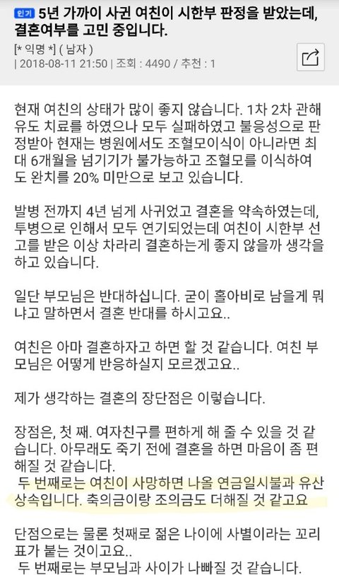혹시라도 내가, 혹은 주변에 시한부 판정을 받았거나, 5년가까이 사귄 남자친구와 결혼약속을 했거나 하시는 분이 있다면 꼭 확인하세요!!!