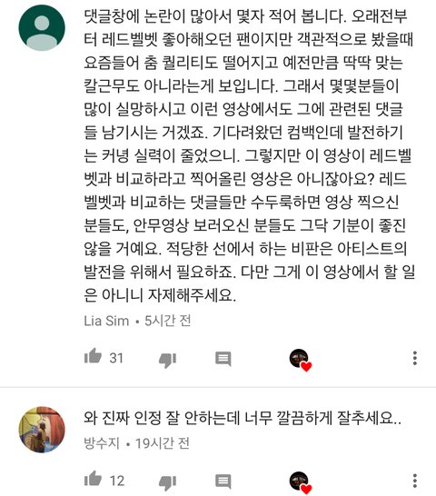 나 댓글 계속 구경했는데 어느순간부터 베플하나에 너네가 트와랑 블핑 언급하더라 ㅋㅋ