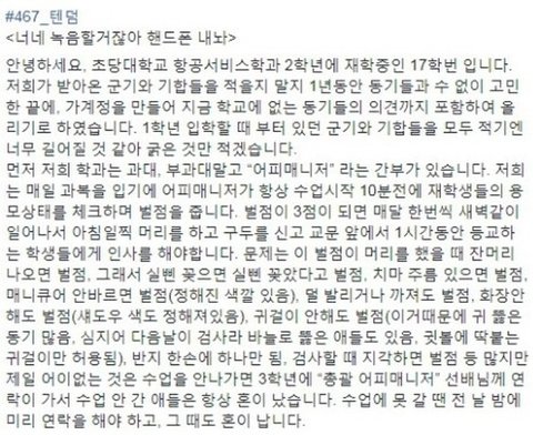 초당대학교 항공서비스학과 똥군기