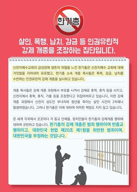 신앙의 자유를 박탈하고 인권유린을 조장하는 한기총