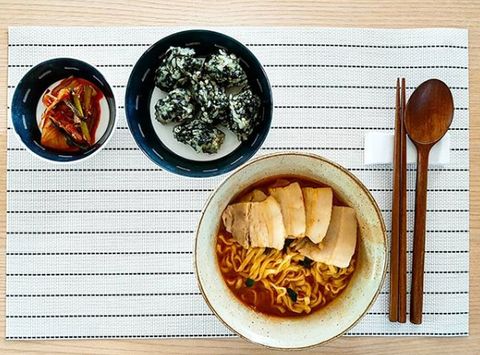 라면(차슈인척 전날먹은 보쌈을....)+주먹밥