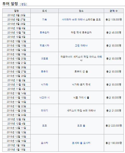 앨범 [412,277장; 19,000원] 78억원싱글-일본[702,941장; 28,000원] 197억원출처: wikipedia, hakuhodo, 한터, oricon