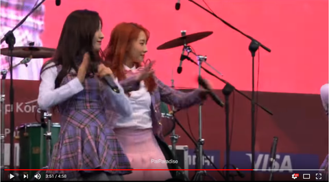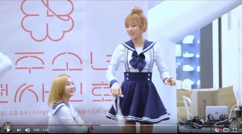 우주소녀 누군지 모르겠는데 빨간머리 앞에 안무 까먹어서 눈치보는거임 ㅋㅋ